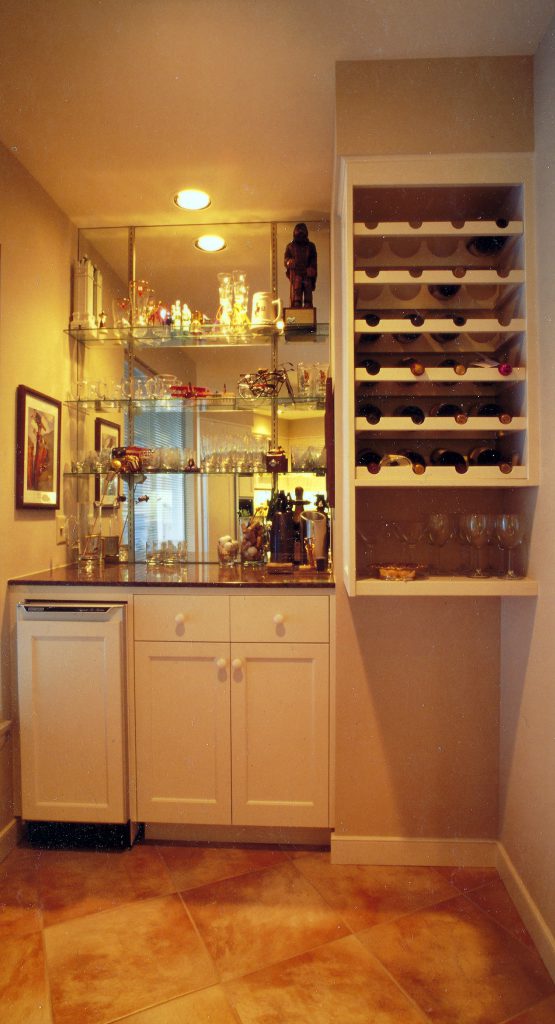 This 1946 William J Bain home had its floor plan reconfigured to provide a more contemporary and open interior space for entertaining large groups. New interiors were added for entry, living room, dining room, kitchen, den, powder room, laundry, guest bath, and master bath. A new front porch and new courtyard garden were also added.